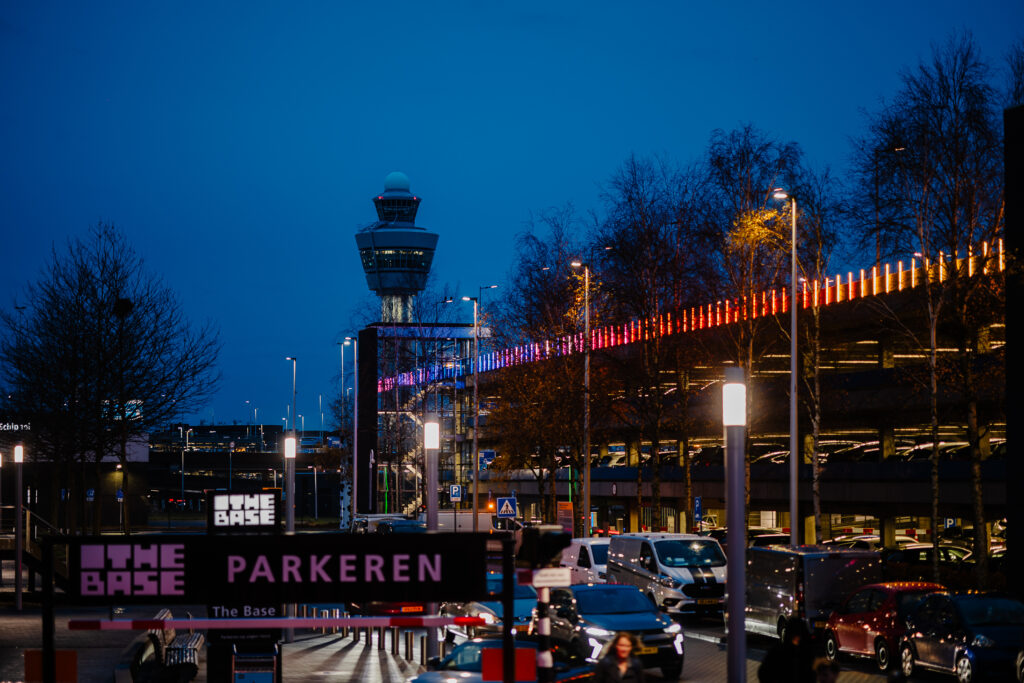 De lichtkunstinstallaties zijn te zien van 1 december 2025 tot en met 6 februari 2026 in Schiphol Business District. Scan de QR-codes op de vloerstickers voor meer informatie over de verschillende werken.